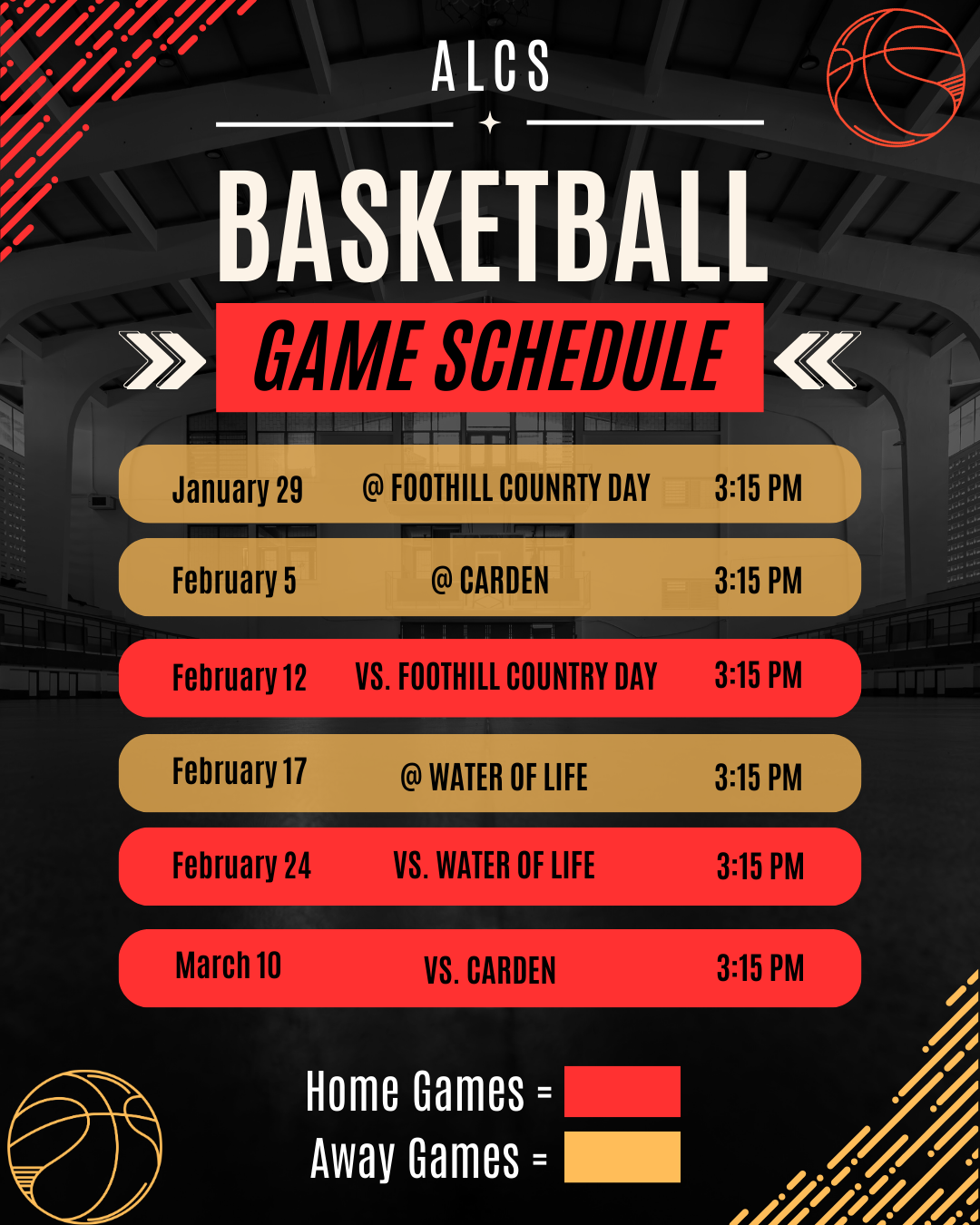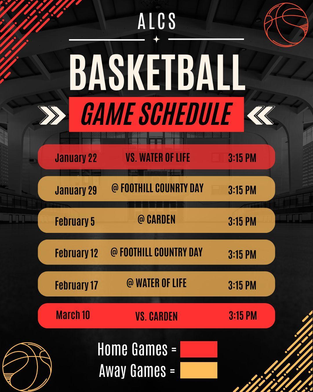 π ALCS Basketball Team β 2026 Game Schedule π